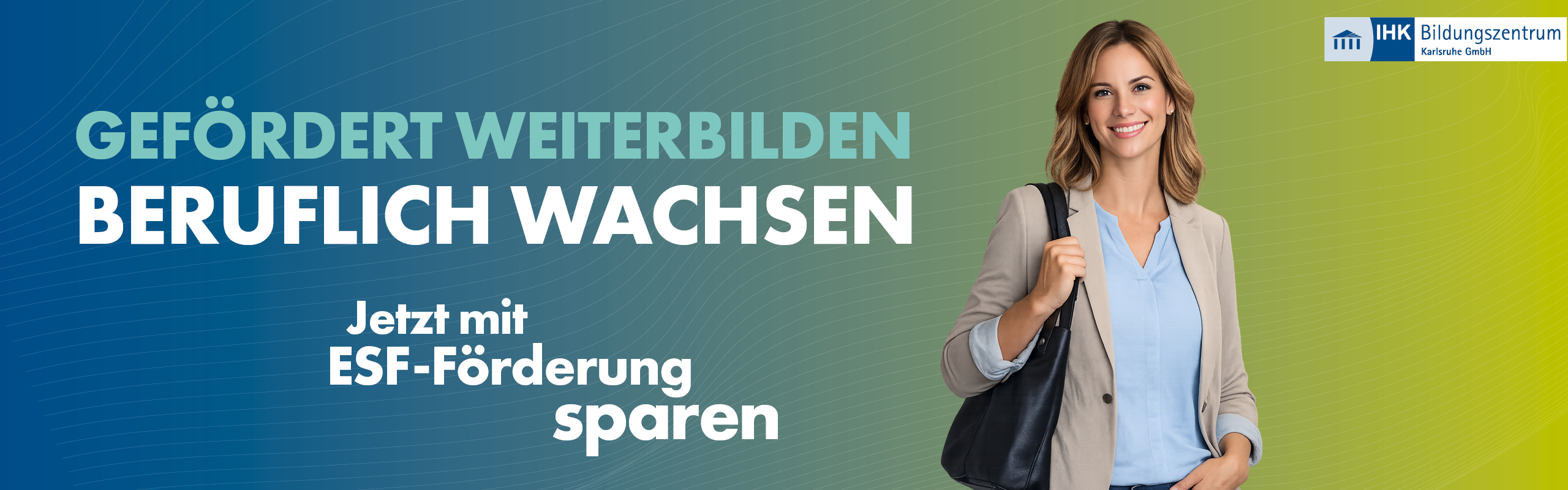 Das IHK Bildungszentrum Karlsruhe begleitet Unternehmen und Teilnehmende bei der Auswahl geeigneter Weiterbildungsangebote und zeigt auf, wie die ESF-Förderung sinnvoll genutzt werden kann. Ziel ist es, Qualifizierung planbar, wirtschaftlich und nachhaltig zu gestalten.